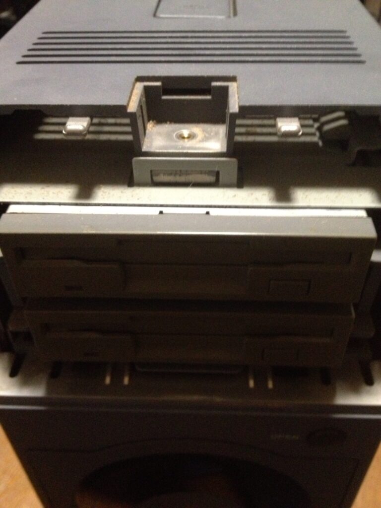 リセットスイッチがパネル側に付いていますので、その前にCDROM後部より