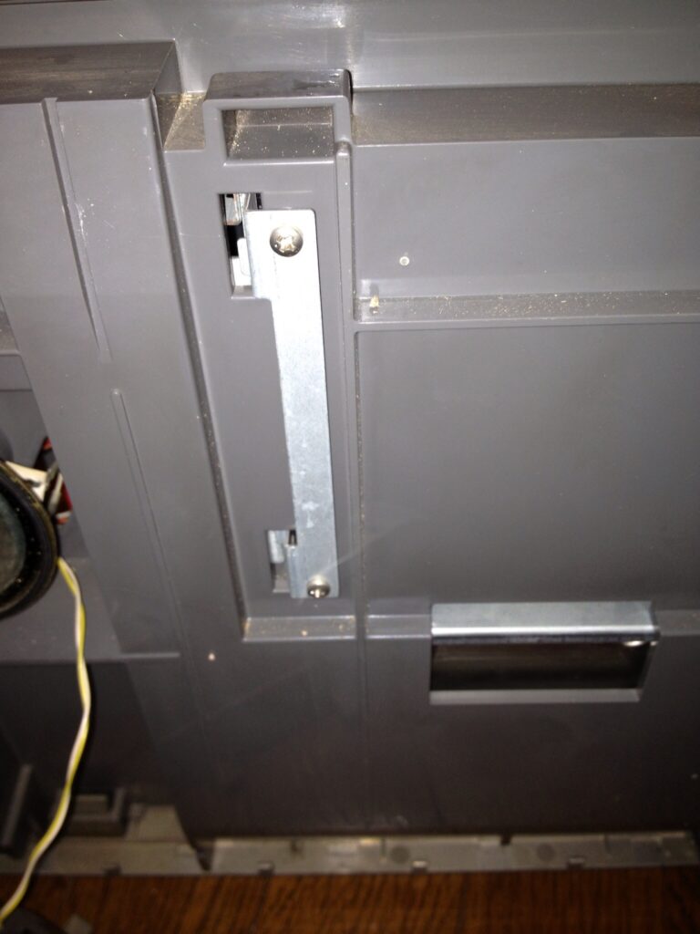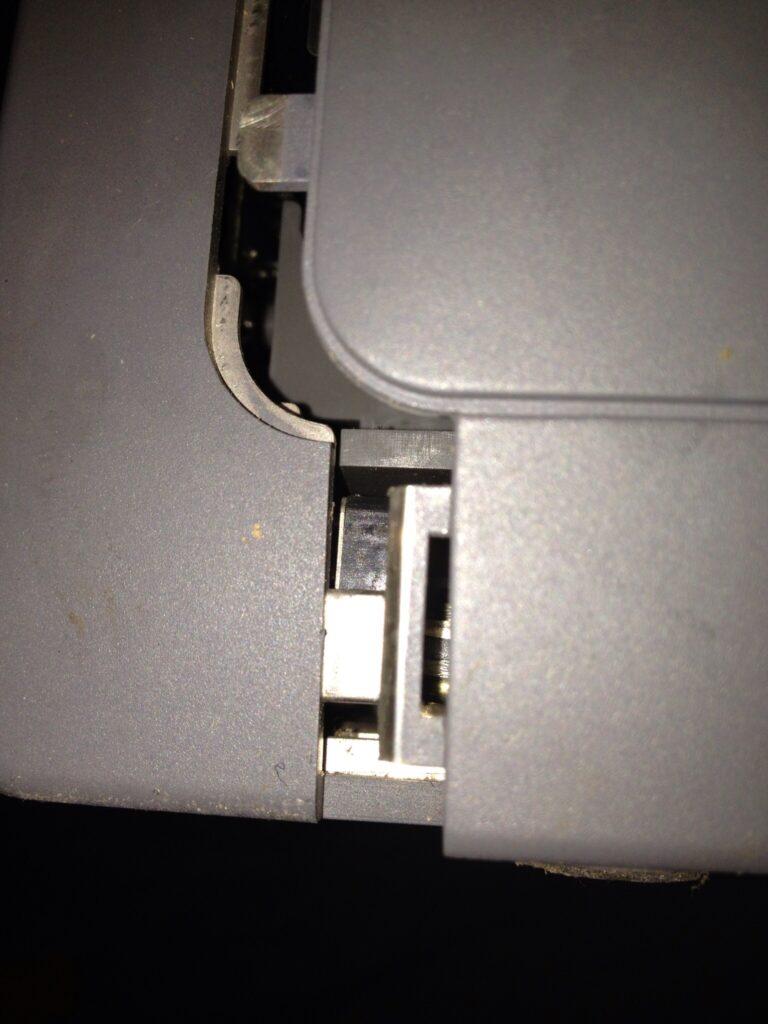 電源部が先に外れたとしても、スライド式金具に当たり正しく戻す事ができません。