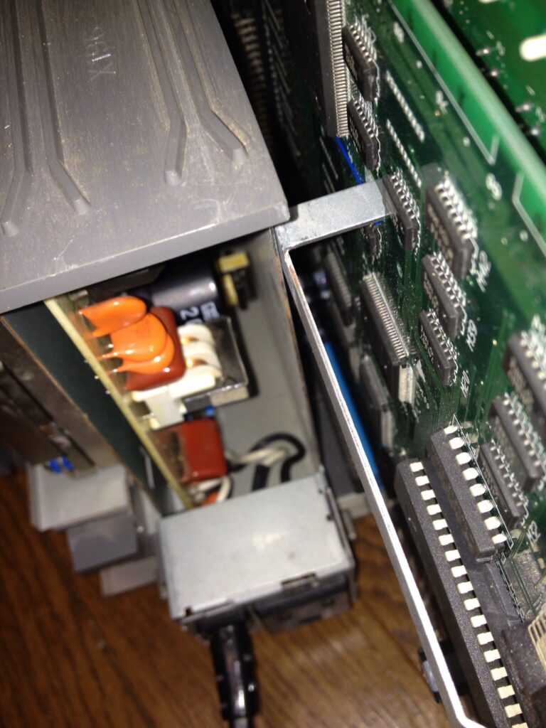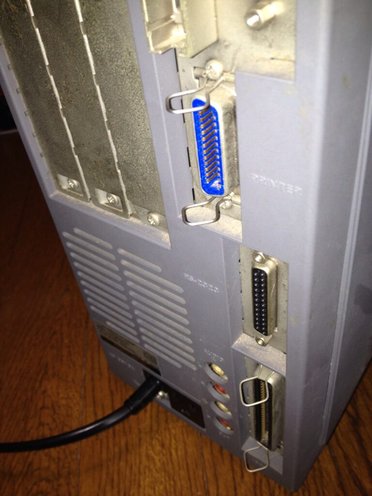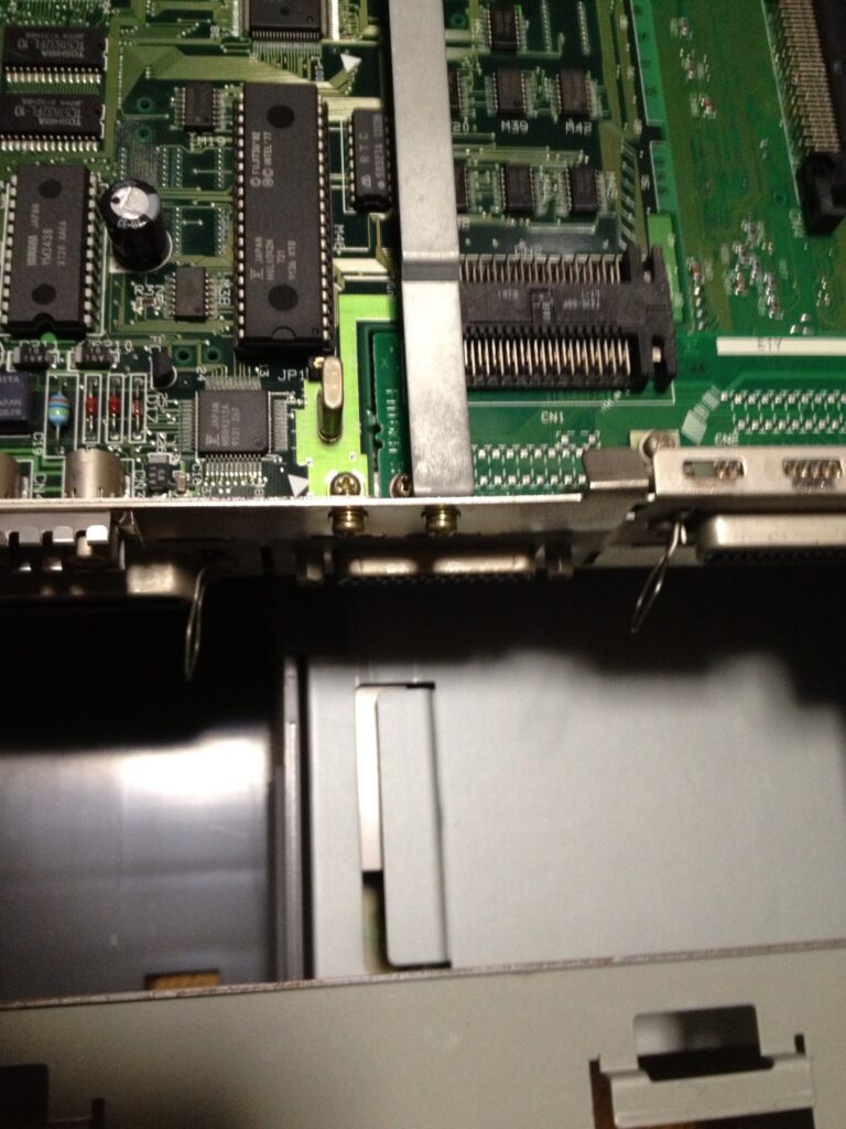 SCSIとプリンターポートの固定金具は起こした状態で、背面パネルを取り付けます。